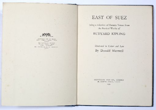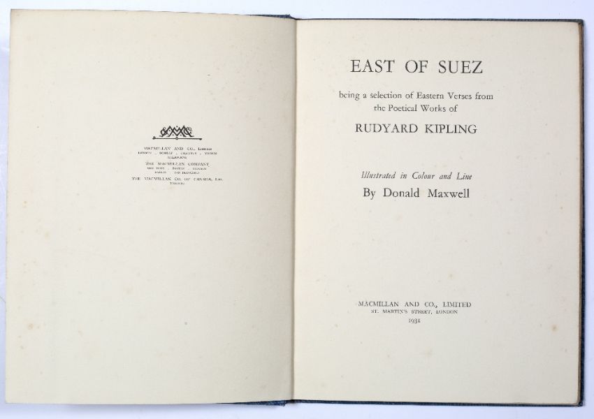 'East of Suez, Illustrated by Donald Maxwell' Macmillan & Co Ltd, London, c.1931, gold tooled blue cloth