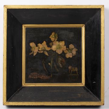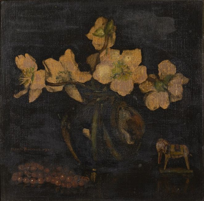 Christmas Roses, oil on board, framed, 25cm x 25.5cm