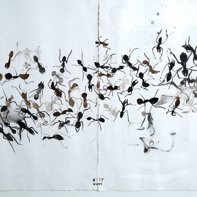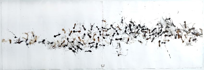 Olly and Suzi (British, 20th Century) Ants, signed Olly Suzi to the lower center, ink on paper, framed and glazed, 76 x 223cmProvenance: Long Court, Randwick, Glos
