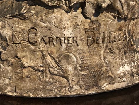 After Louis-Robert Carrier-Belleuse (1848-1913)painted plaster model of a maiden and two putti, signed 59cm highProvenance: Long Court, Randwick, Glos