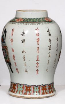 decorated to the body with calligraphy and antiques, 35cm high