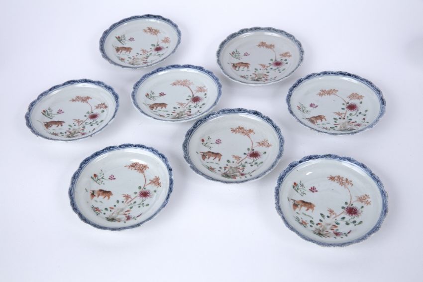 Set of eight tea bowls and saucers