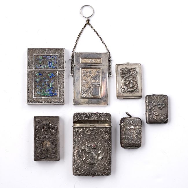 Seven white metal card cases