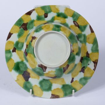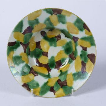 decorated all over with a sancai egg and spinach mottled glazed, foot with plain white wash glaze, 19cm diameter x 6cm high