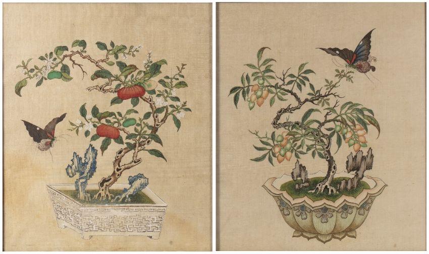 Pair of painted pictures on silk