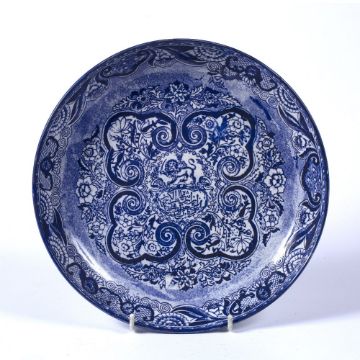 Blue printed pottery dish