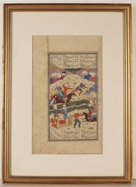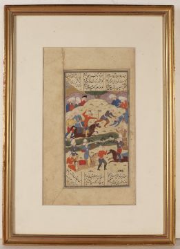 battle scene with two columns of text in Nasta'liq script, 19cm x 10.5cm