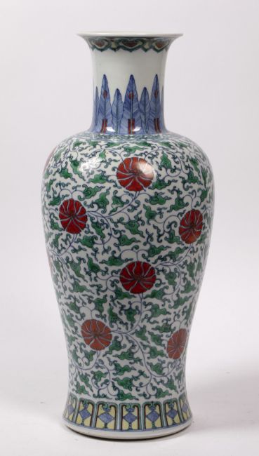 with stylised lotus interspersed with green trailing leaves, within a palmette border, Yongzheng mark, drilled to the base,.47cm high