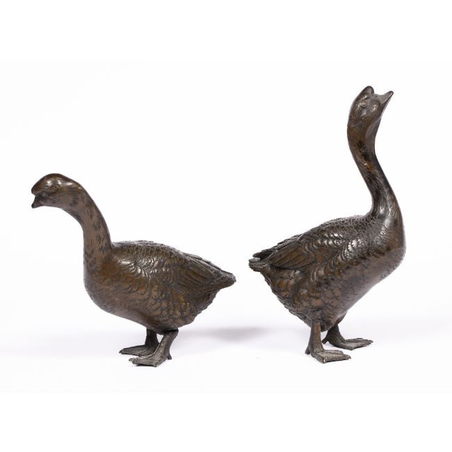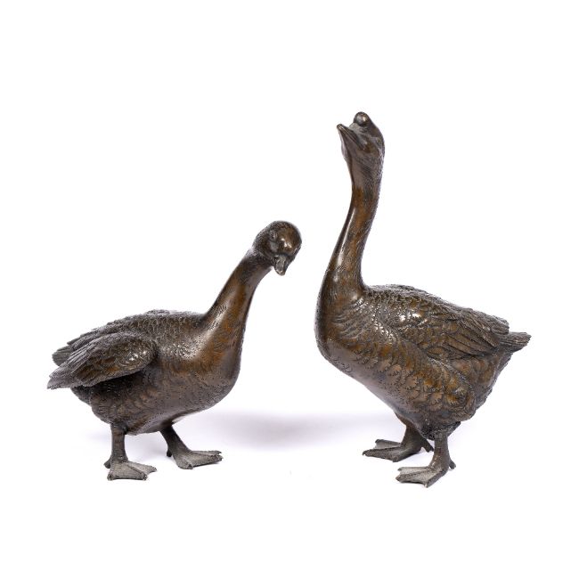 Pair of bronze model geese