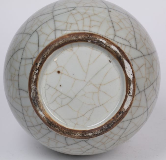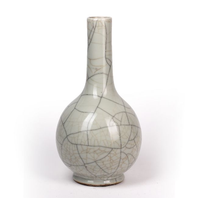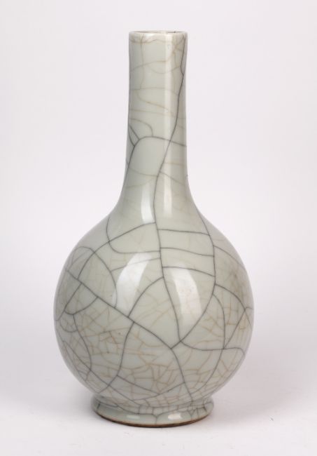 covered in a pale glaze, with a fluted neck, 37.5cm high