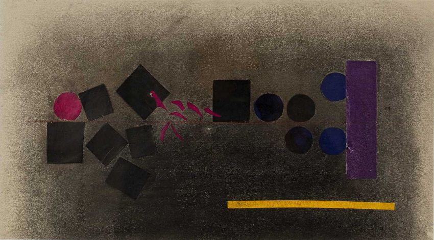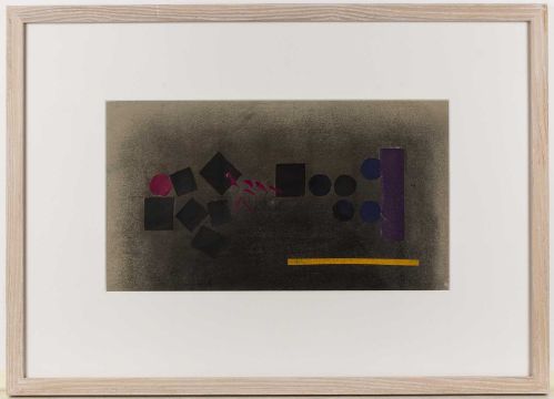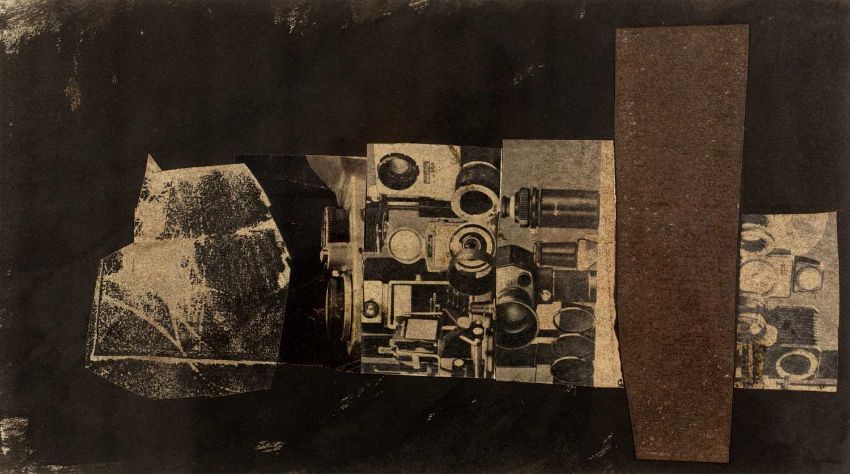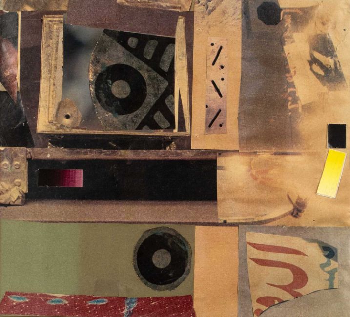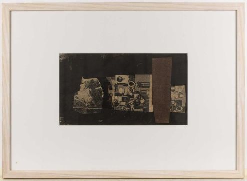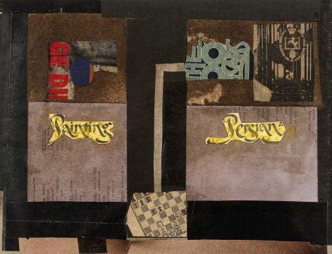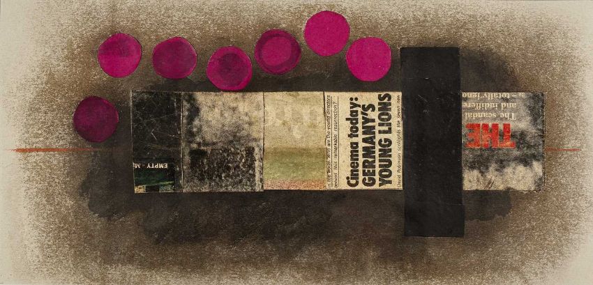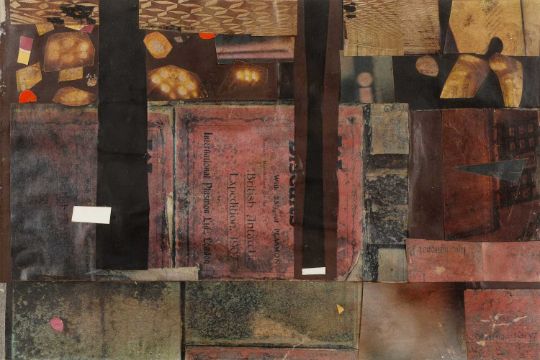 A group of six mixed media and collage works c.1970's to include: 'Young Lions'; 'In Camera'; 'Still Life'; 'Fire'; 'Painting Persian'; and 'Cannizzano'; various sizes (6)