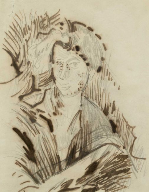 pencil, pen, and ink