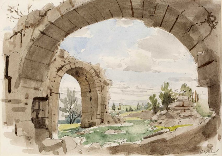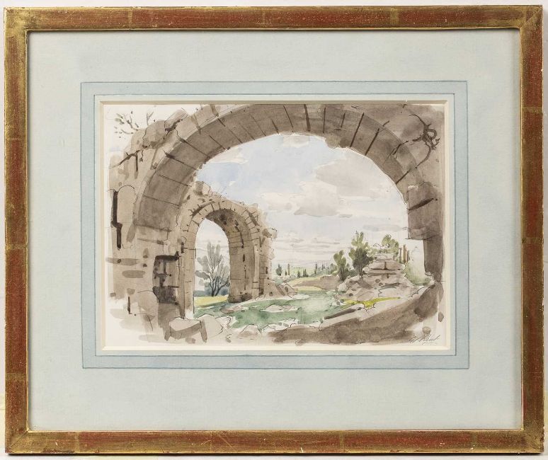 17 x 27cm; and a further watercolour by Graham Rust, Ruined Abbey in a pastoral landscape, 15 x 20cm (2).