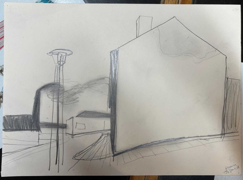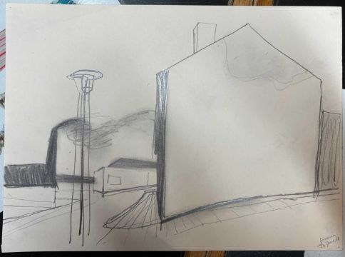 69 x 55cm, unframed; and a pencil sketch in the style of Roger Hilton (2).