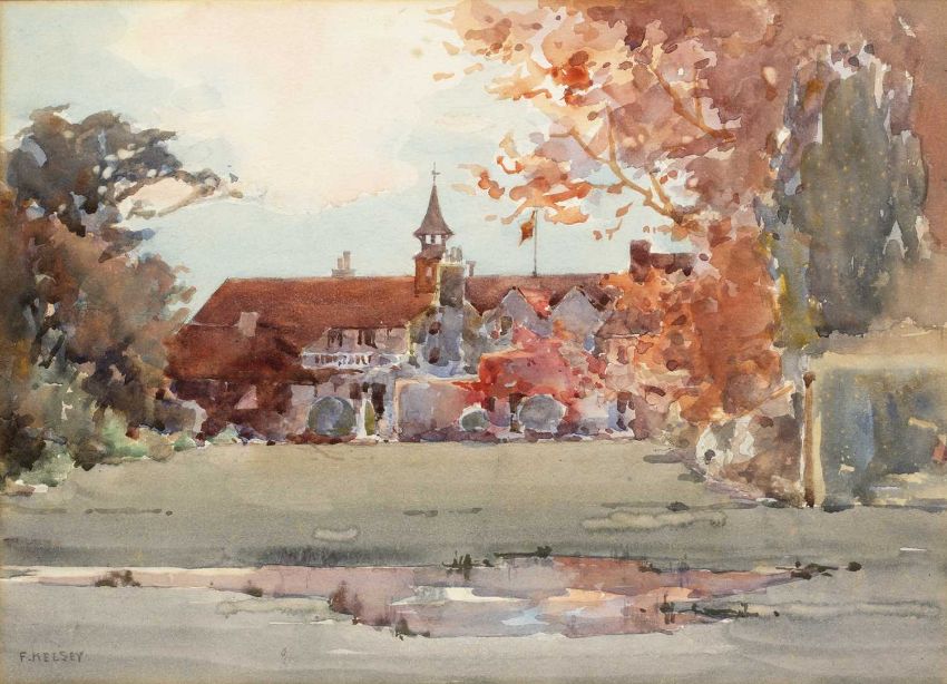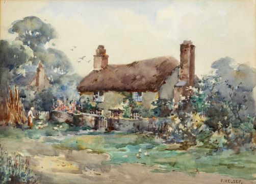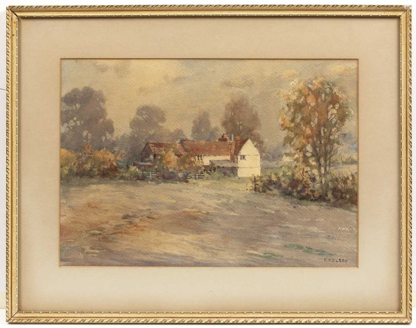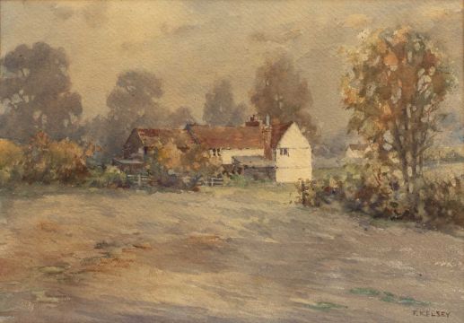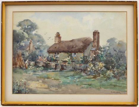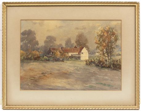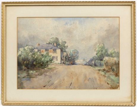 A country retreat, signed, watercolour, 24.5 x 34cm; and three further by the same hand, one unsigned (4)