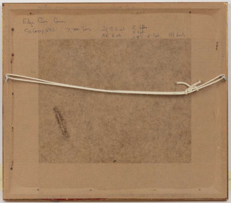 Hay barge at low tide, signed with initials, watercolour, 10.5 x 15.5cm; and W. Sutton – H.M.S. Howe & H.M.S. George, signed, watercolour, a pair, 8 x 12cm (3)