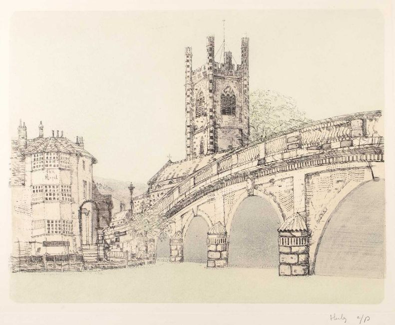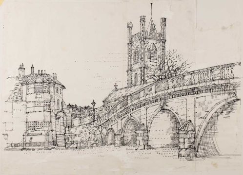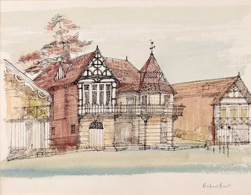 59 x 78cm, unframed; and a working sketch of Henly Bridge; and a watercolour of Henly, both by Richard Beer (3).