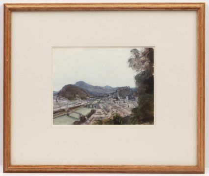 St. Stephen's Cathedral, Vienna, signed, watercolour, 22.5 x 29cm, and five further by the same hand, titles including 'From the Cliff, Salzburg', 'Royal Palace from the North, Madrid', and 'Rocks near Myar'. (6)