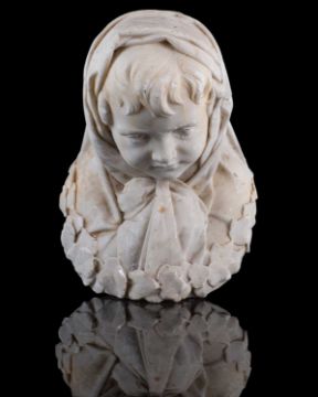 Bust of a girl in a scarf with trailing ivy, marble, signed and dated 'G. Paganucci f. Firenze 1874' to the reverse.