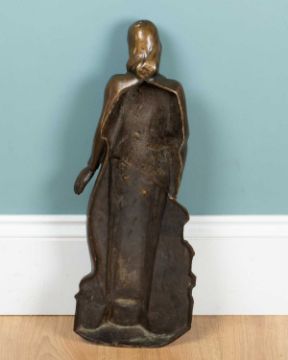 A 20th century bronze wall-mounted statue of Saint Barbara