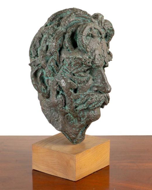 Signed with initials 'E.C.', and dated '66', mounted on a wooden plinth base.