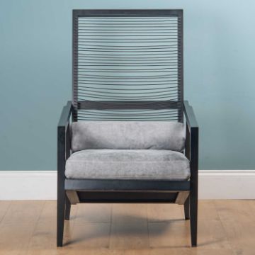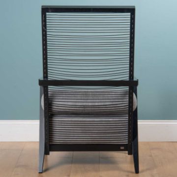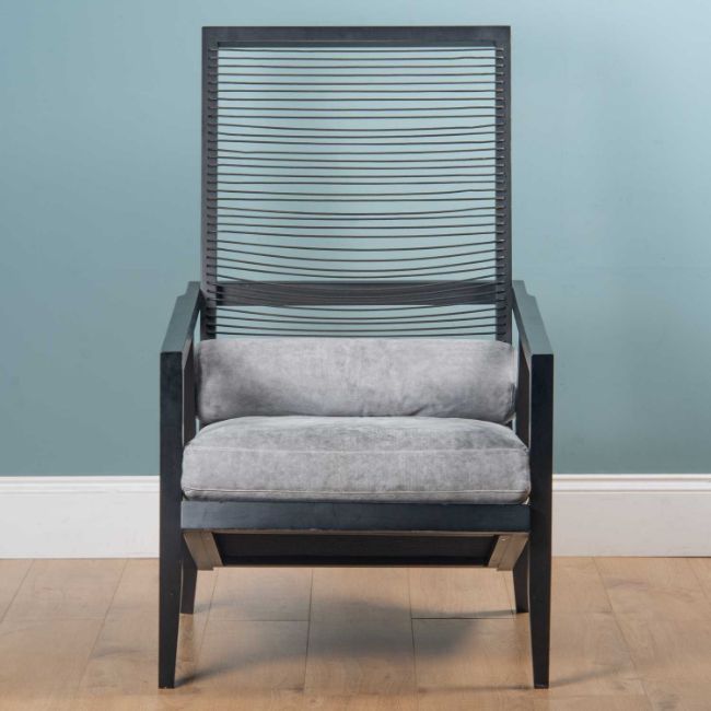 With a strung back and grey draylon cushion.