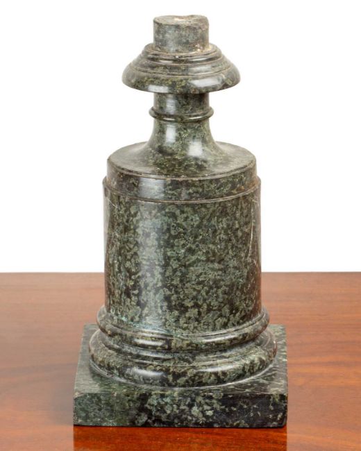 The turned support with a waisted top on a square-section base.