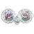 With a rose knop to the cover and hand-painted bird decoration to the cover and the body of the cup. The crabstock handles with moulded floral sprays sprouting from them; together with two continental porcelain plates decorated in a similar manner.