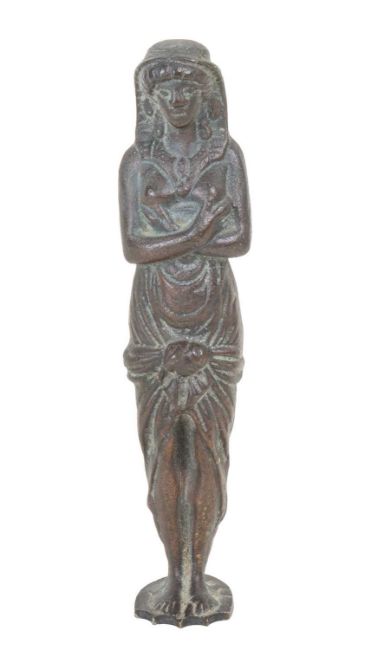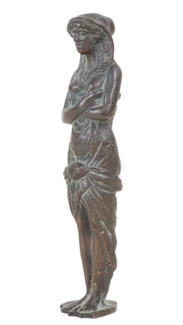 The seal in the form of a classical maiden, with shield shaped matrix bearing the crest of a bears paw grasping a serpent.