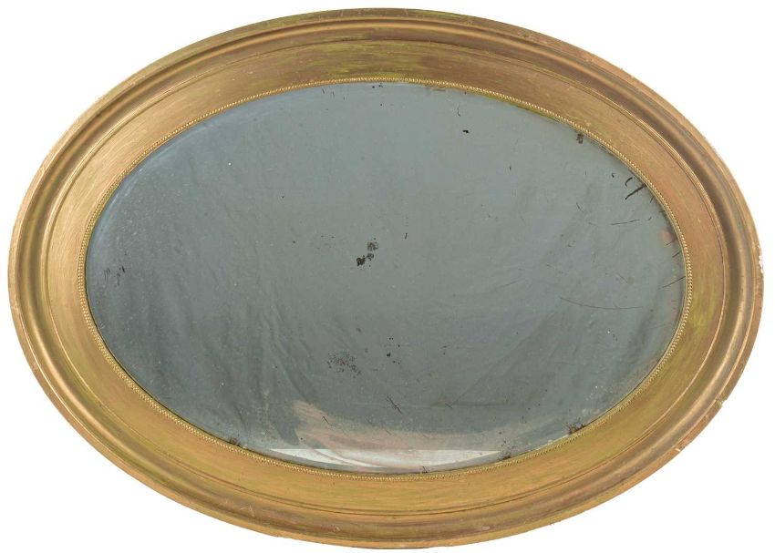 Minor marks and scratches to the frame overall. Some foxing to the mirror plate. The frame later painted gold.